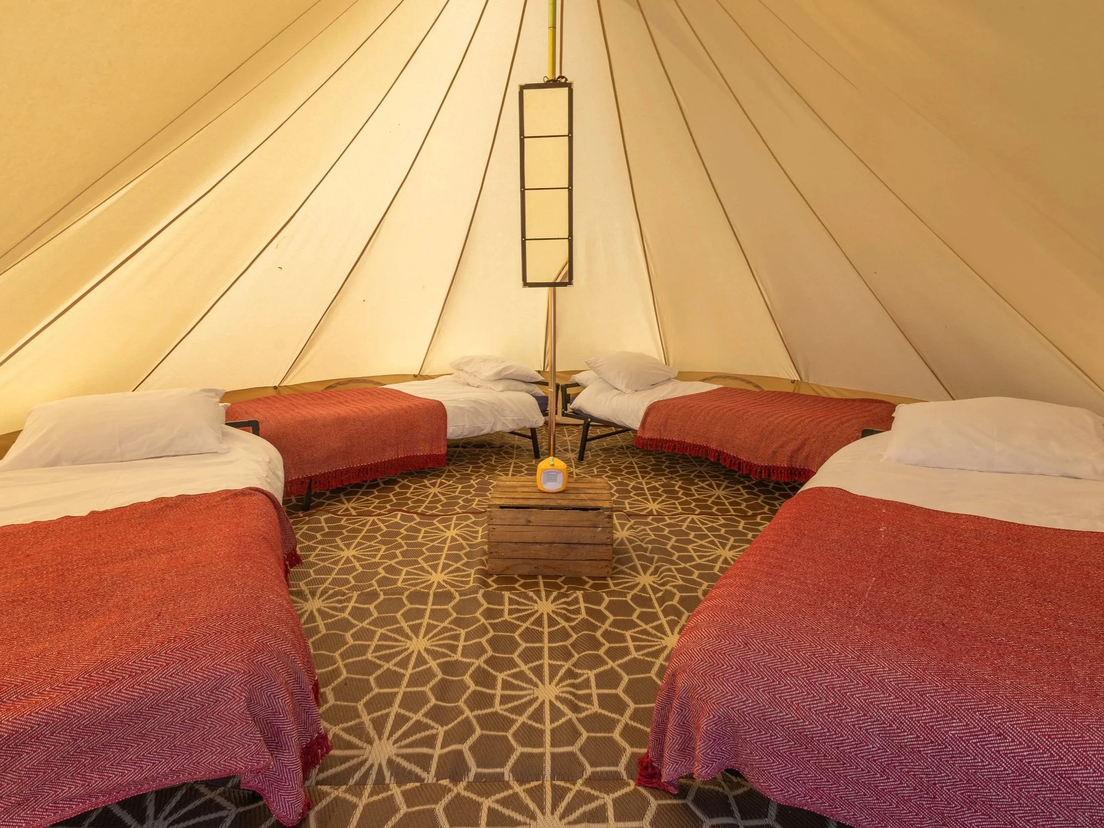Accommodation comes in the form of fully furnished luxury bell tents, sleeping up to four people in comfort. Each tent includes real bed frames with mattresses, duvets and pillows, lighting, flooring and bedside tables - everything you need for a restful night’s sleep between days at the course or nights enjoying the atmosphere.